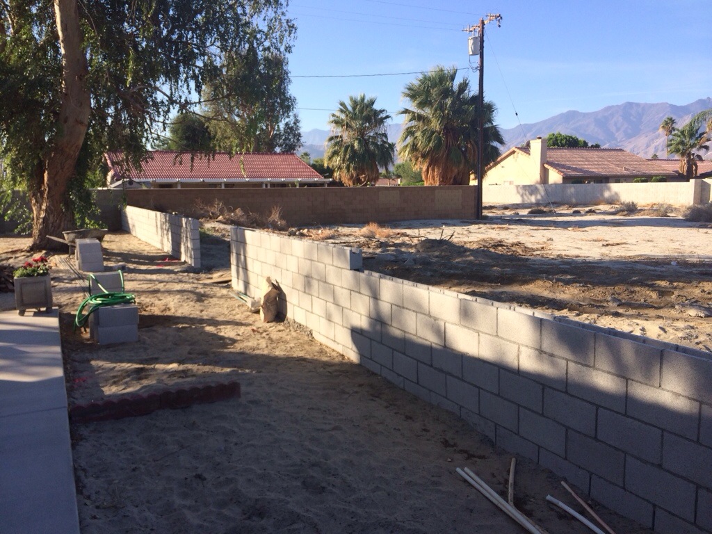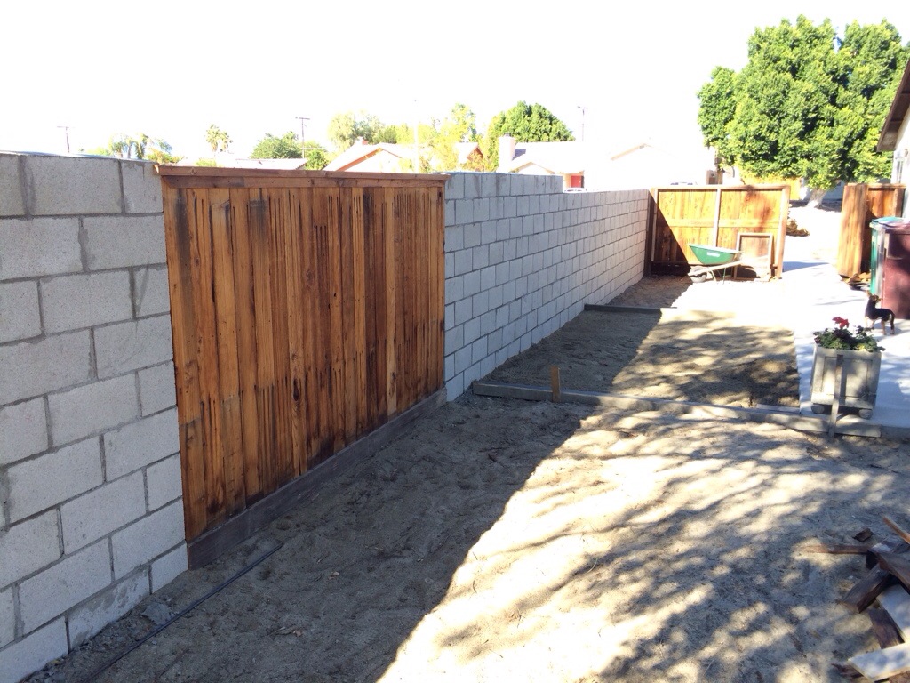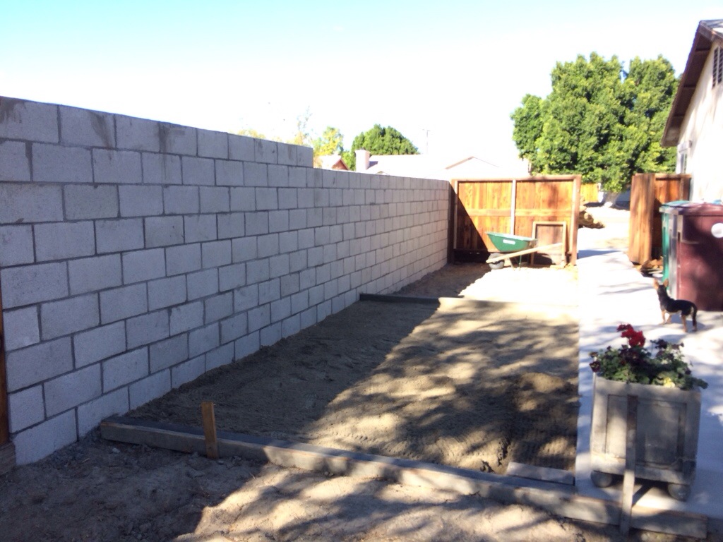 The wall is now finished. All that is left is to skim coat the block so it is not so prison like, but that might be a project for next winter. The photos show half way, completed with the wooden access for work to be done in the backyard later on, and also an area where we will have our small firepit.