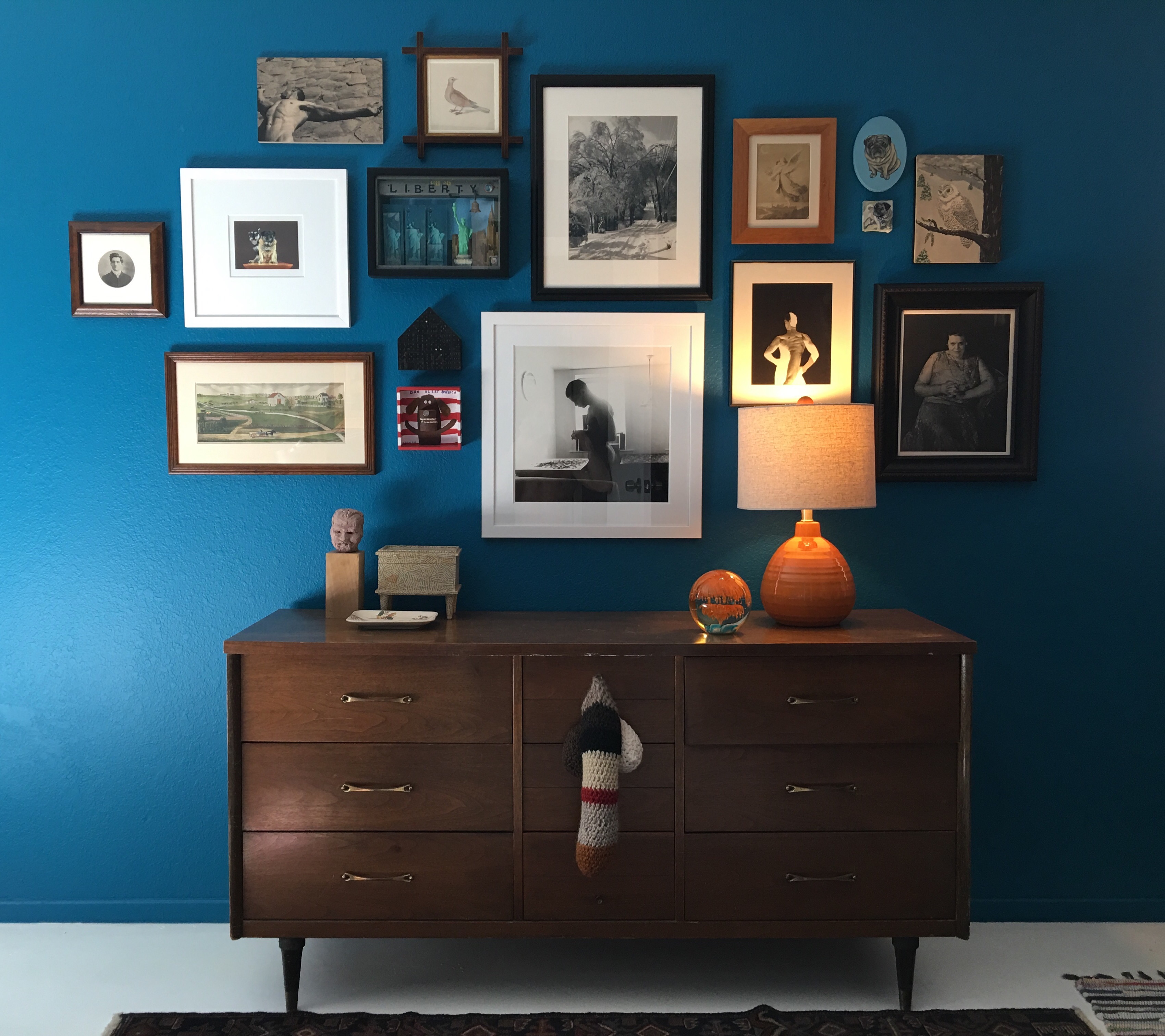 Fresh paint Posted on February 16, 2016 by peasant stock Finally repainted the bedroom to be flat after deciding that the semi-gloss was to glossy. It was nice to rehang all the art.